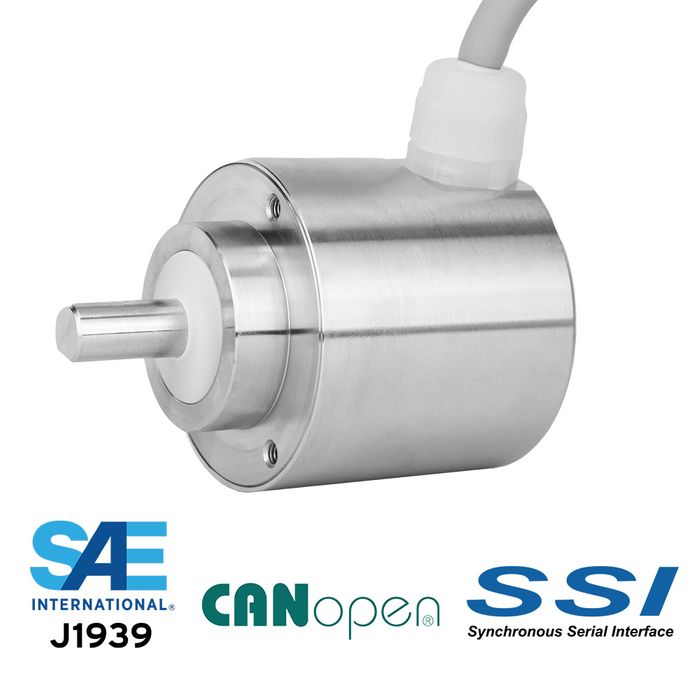 ✅ SSI, CANopen®, or SAE J1939 communication