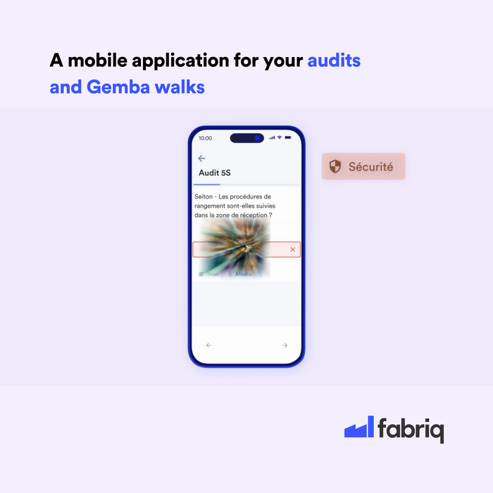 Digitize each step in your audits, Gemba walks, or checklists, thanks to standard question types that are tailored to the needs of the shop floor (single, multiple or illustrated choice, flexible format response grid, automatic performance indicator updates, etc.) and conditional rules for orienting the questionnaire based on responses. The forms can be shared between your different teams to ensure the process is standardized.